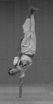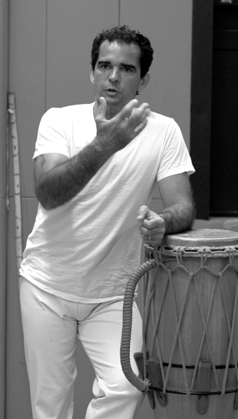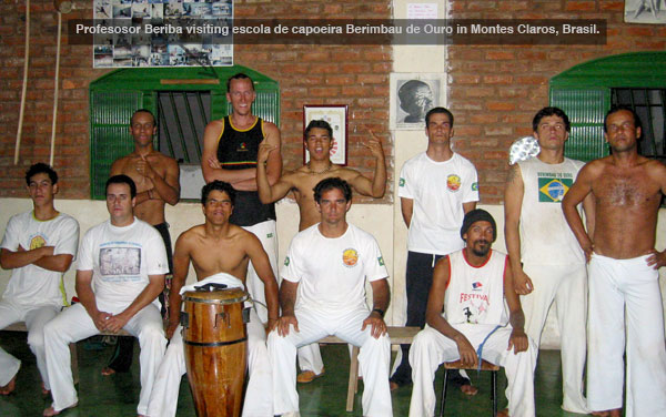Wie is professor BeribaMet zijn lengte van 2 meter kreeg Jeroen Kinsbergen de capoeira naam Beriba (een boomsoort waar het muziekinstrument de berimbau van wordt gemaakt). Voor hij met capoeira begon heeft hij tae kwon-do en judo beoefend. Capoeira heeft acht jaar geleden zijn hart veroverd. Zijn meester is mestre Marreta van capoeiragroep Berimbau de Ouro. In het dagelijks leven werkt hij als docent beeldende vorming. Het overdragen van informatie is een passie voor hem. “Iedereen kan iets aanleren, ieder mens doet dat op zijn eigen manier, het is een uitdaging mensen kennis en vaardigheden aan te bieden en te begeleiden in hun leerproces”. Een jaar geleden heeft mestre Marreta hem het koord van professor gegeven waardoor hij nu mag lesgeven. |